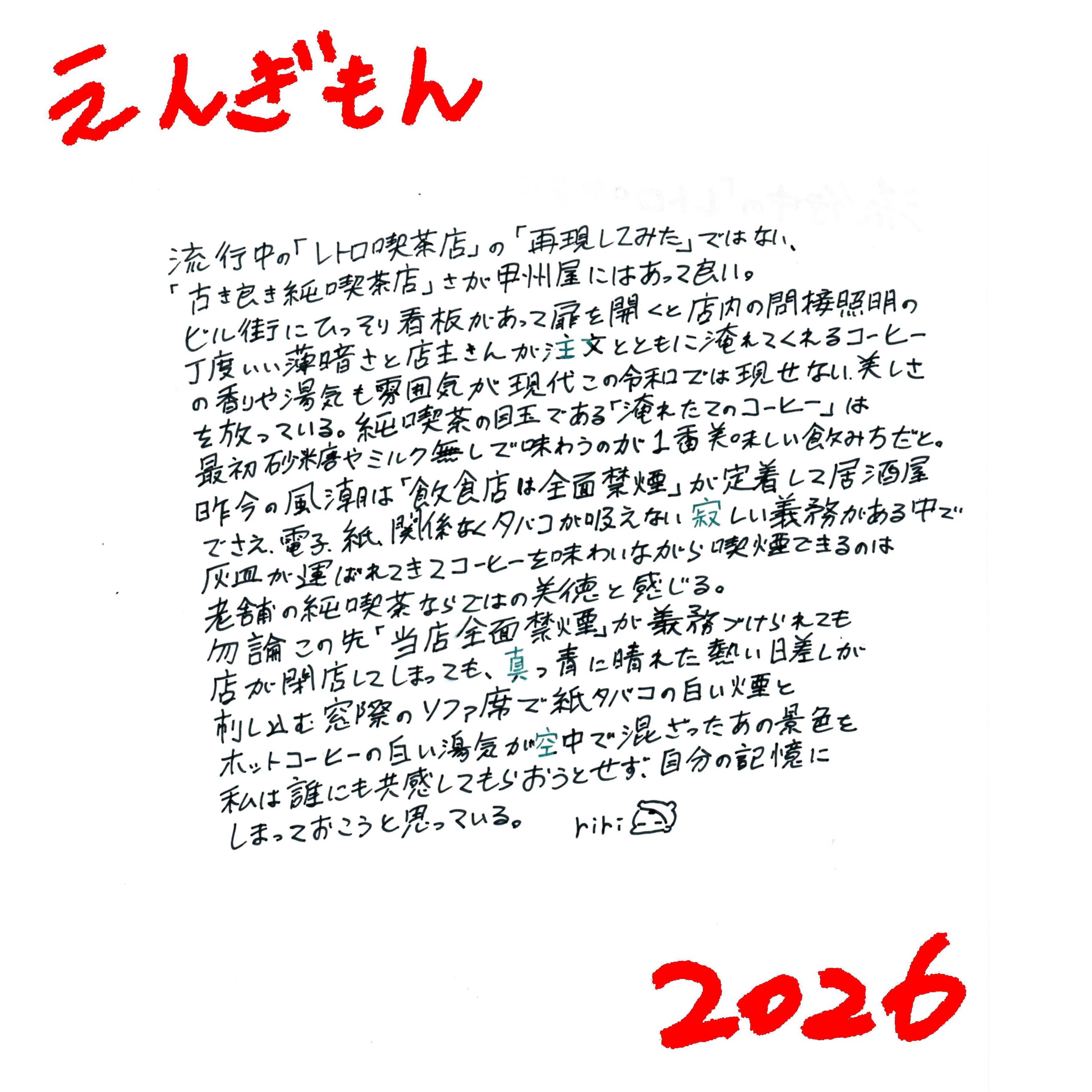 ・上田の行きつけのお店カレンダー